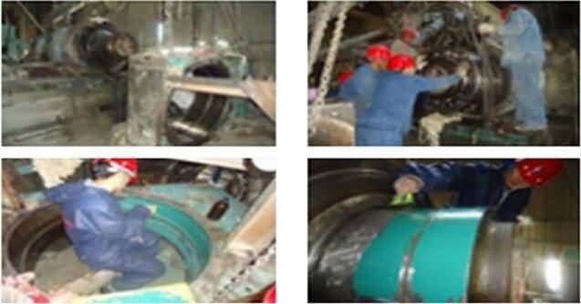 ★?表面處理:表面處理對修補(bǔ)效果的影響很大。被修表面應(yīng)打磨粗糙或噴砂處理,要打磨出基材本色,對一些特殊工況要進(jìn)行特殊處理,如鑄鐵泵殼表層含水帶銹要用火焰燒烤的方法將表層內(nèi)的水分除凈,然后打磨或噴砂:對一些軸類或孔類磨損尺寸的恢復(fù),在保證足夠強(qiáng)度的前提下,可打磨或車削粗糙的螺紋表面。導(dǎo)軌或缸體劃傷部位要打磨出矩形槽或燕尾槽,深度要2mm以上。