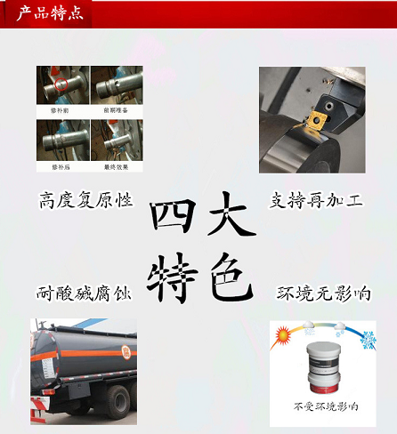 適用于鋼鐵零件磨損修補及劃傷、裂紋等損傷修復(fù)。機械強度高;抗磨損,耐酸堿腐蝕;能與金屬完美結(jié)合。